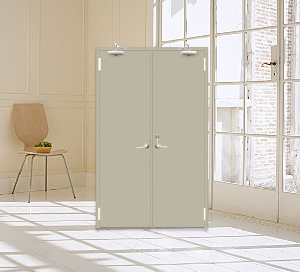 用鋼質(zhì)材料制作門框、門扇骨架和門扇面板,門扇內(nèi)若填充材料,則填充對人體無害的防火隔 熱材料,并配以防火五金配件所組成的具有耐火性能的門。